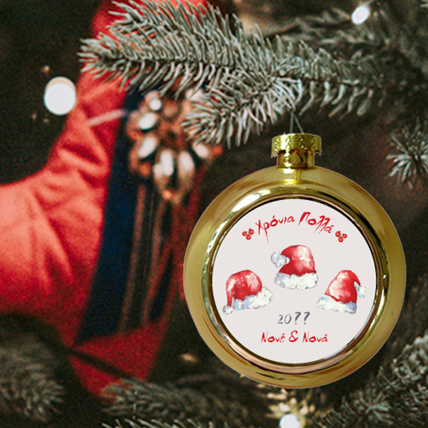 Η Πρωτότυπη Κλασική ακρυλική Μπάλα με Σκούφους Αη Βασίλη με Ονόματα, Ευχές, για τα Πρώτα Χριστούγεννα, είναι το διαφορετικό χριστουγεννιάτικο δώρο που θα κάνετε είτε στον εαυτό σας είτε στον παππού και την γιαγιά για να πείτε χρόνια πολλά.