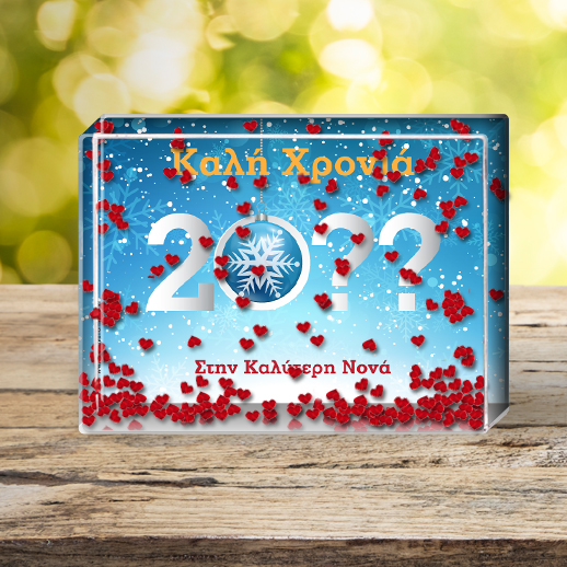 34044|Καλή Χρονιά με Κορνίζα με Αιωρούμενες Καρδούλες Έτος, Ευχές