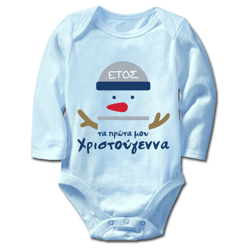 Ένα μπλε φορμάκι με στάμπα " Τα Πρώτα Μου Χριστούγεννα " είναι ένα δώρο που κάθε μαμά θα ήθελε να κάνει στο μωράκι της !