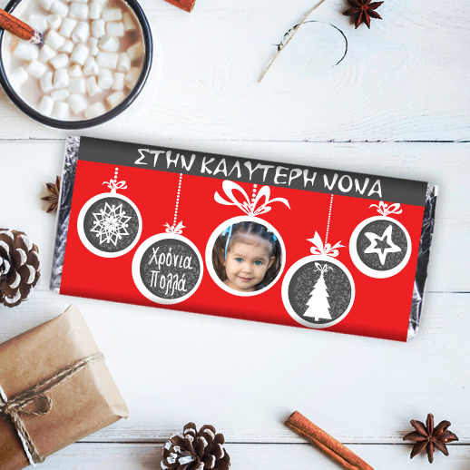 Το Χριστουγεννιάτικο Δώρο Προσωποποιημένη Σοκολάτα με φωτογραφία, Δώρο για τη Νονά, με Όνομα και Αφιέρωση για Χρόνια Πολλά τα Χριστούγεννα και την πρωτοχρονιά, είναι ένα ξεχωριστό και πρωτότυπο δώρο για την γιορτή της κάθε φίλης ή φίλου σας! Το Δώρο Προσωποποιημένη Σοκολάτα με φωτογραφία, Δώρο για τη Νονά με Όνομα για τις γιορτές των χριστουγένννων, μπορεί να είναι το δώρο σας, στην θεία, στην Μαμά, τον Μπαμπά και κάθε άλλο φιλικό ή συγγενικό πρόσωπο και είναι ένα ξεχωριστό δώρο διαφορετικό από κάθε άλλο που έχετε κάνει μέχρι σήμερα, γιατί είναι προσωπικό και δημιουργεί μοναδικές αναμνήσεις για πάντα. Η Προσωποποιημένη Σοκολάτα με φωτογραφία, Δώρο για τη Νονά, με Όνομα και Αφιέρωση, μπορεί να δοθεί σαν γιορτινό δώρο χριστουγέννων στην Γιαγιά, τον παπππού ή ακόμα και στον μπαμπά ή την Μαμά και θα είναι το δώρο εκπληξη που θα μείνει για πάντα αναμνηστικό στο σπίτι. Προσωποποιημένη Σοκολάτα με φωτογραφία, για τη Νονά με Όνομα και ημερομηνία, είναι το δώρο που θα ξεχωρίσει από όλα τα άλλα που έχετε κάνει μέχρι σήμερα για τα χριστουγεννα ή την πρωτοχρονια κάθε φίλου ή συγγενή. Μπορείτε επίσης να τη συνδυάσετε με μια προσωποποιημένη κούπα για τον καφέ ή το τσάι ΠΕΡΙΓΡΑΦΗ Σοκολάτα Γάλακτος 85 γρ. Προσωποποιημένη 4χρωμη εκτύπωση