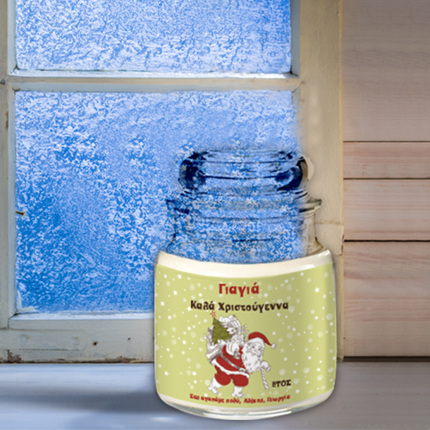Προσωποποιημένο Κερί σε Γυάλινο Βάζο με Καπάκι Χριστουγεννιάτικο με Όνομα, μπορεί να δοθεί σαν γιορτινό δώρο χριστουγέννων στην Γιαγιά, τον παπππού ή ακόμα και στον μπαμπά ή την Μαμά και θα είναι το δώρο εκπληξη που θα μείνει για πάντα αναμνηστικό στο σπίτι.