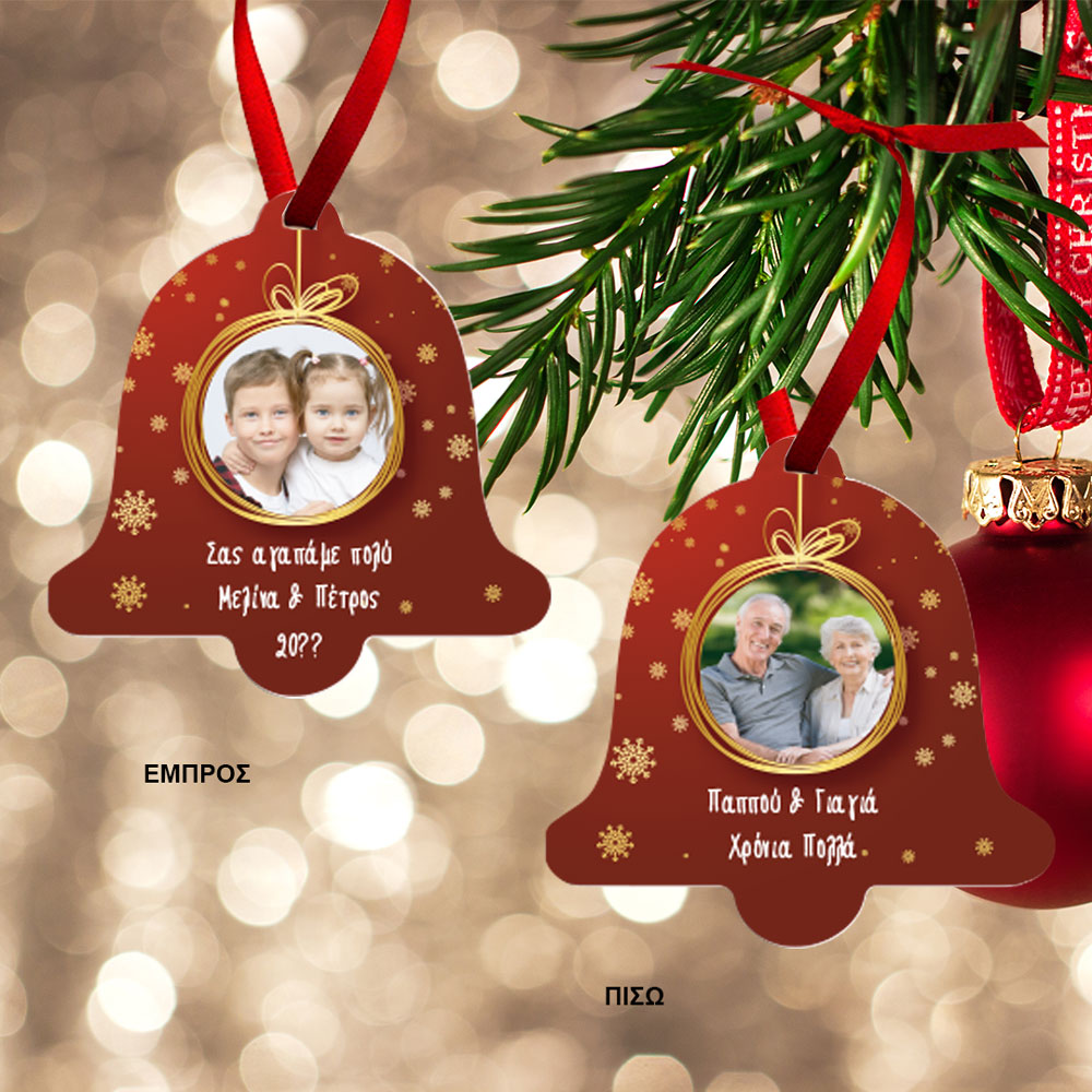 Τα Πρωτότυπα Χριστουγεννιάτικα Μεταλλικα Στολίδια για το Δένδρο δύο όψεων, με Φωτογραφία, Ευχές, Όνομα είναι το ξεχωριστό χριστουγεννιάτικο δώρο που θα κάνετε στην γιαγιά και τον Παππού ή άλλο συγγενή και θα τους εντυπωσιάσει γιατί ξεχωρίζει από όλα τα άλλα και φτιάχνεται αποκλειστικά για αυτούς. Για Χριστουγεννιάτικo δένδρο Στολίδι Με 2 Φωτογραφίες για Δένδρο διπλής όψης, Ονόματα, είναι το δώρο που θα κάνετε στην νονά και κουμπάρα σας ή την θεία και θα μείνει για πάντα θυμίζοντας την στιγμή που το προσφέρατε.