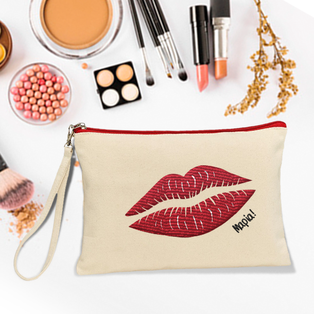 Το προσωποποιημένο Δώρο με κέντημα για Γενέθλια ή ονομαστική γιορτή, Τσαντάκι Γυναικείο, Οργανικό Βαμβάκι Κεντημένα χείλη και Όνομα, μπορεί να είναι πραγματικά ένα ξεχωριστό και οικονομικό, αναμνηστικό δώρο και για τη μαμά, τη νονά με αφορμή τα γενέθλιά τους.