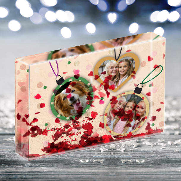 Μπορείτε να προσφέρετε την Κορνίζα με 3 Φωτογραφίες, αιωρούμενες καρδούλες, μήνυμα, σε όποιον φιλο ή συγγενή περάσετε μαζί αυτά τα Χριστούγεννα ή την Πρωτοχρονιά, Χριστουγέννων και πρωτοχρονιάς!.